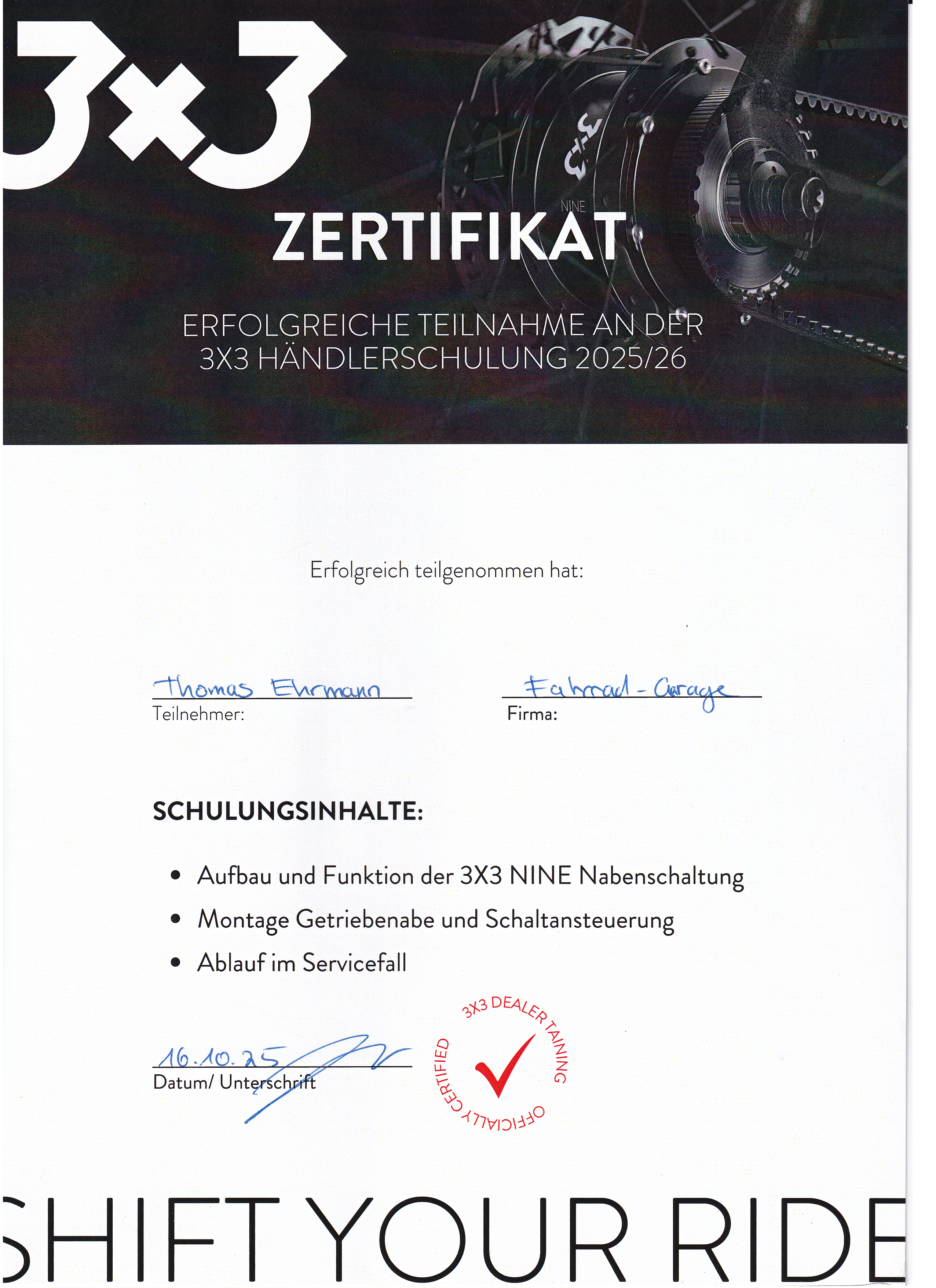 Sowohl für Fahrräder als auch für eBikes verfüge ich über ein großes Expertenwissen und bin selbstverständlich immer auf dem neuesten Stand der Technik.
